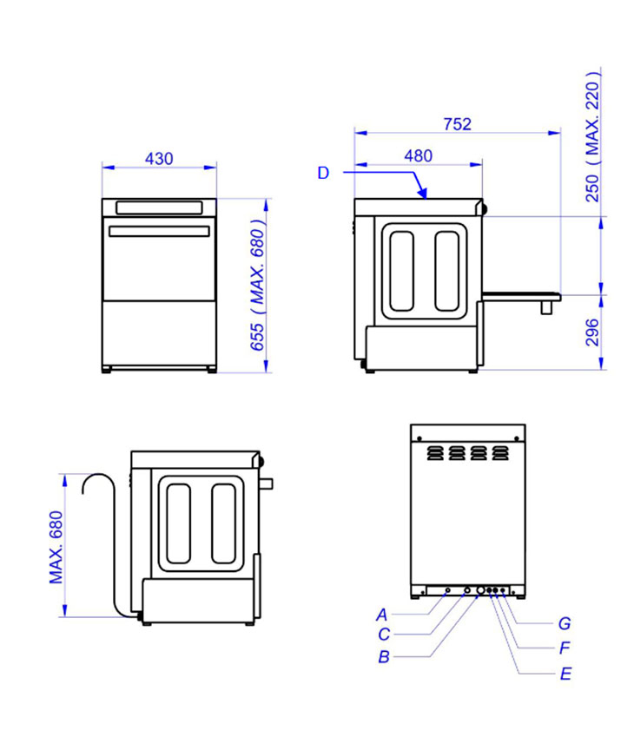 - Potência do tanque de enxágue: 2,4 kW. Capacidade: 4l.