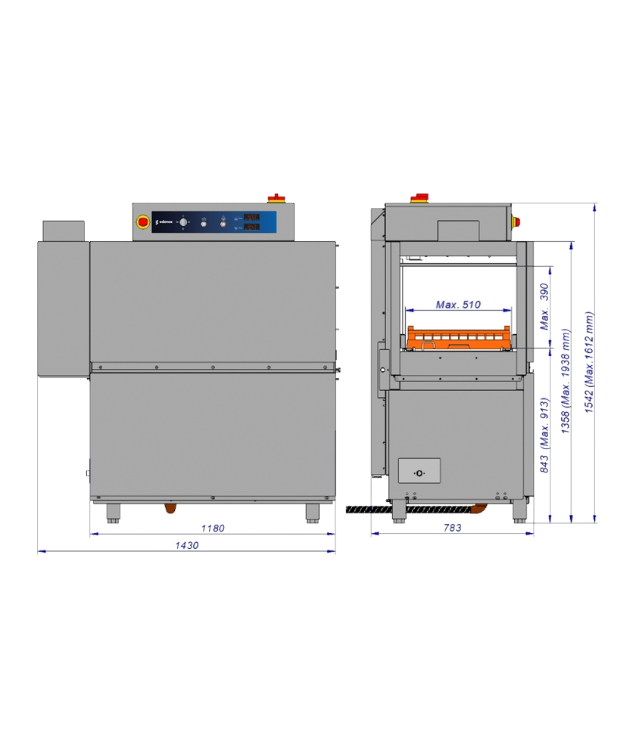 Gama de 4 modelos de máquinas de lavar louça, com e sem túnel de secagem, que permitem lavar todo o tipo de loiça com cestos universais de 500 x 500 mm, até uma produção de 160 cestos/hora. Modelos de entrada direita e esquerda.