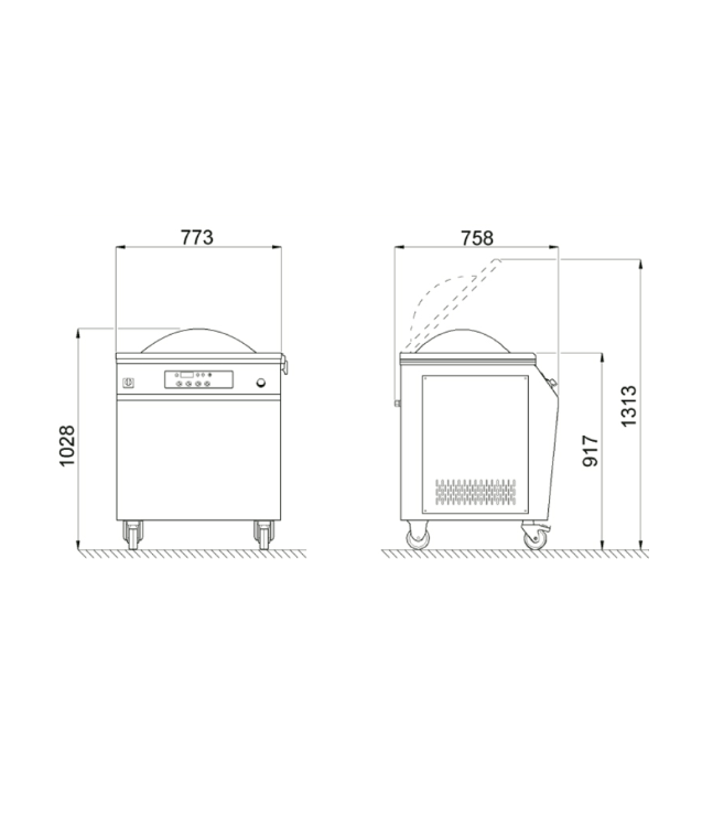 - Câmara embutida em aço inox para facilitar a limpeza e melhorar a higiene, além de aumentar a robustez do equipamento. Tampa de alta altura para embalar todos os tipos de produtos.