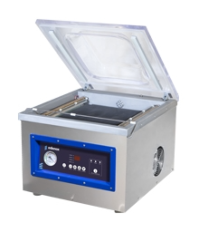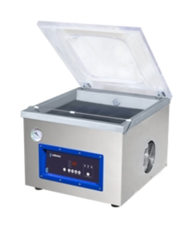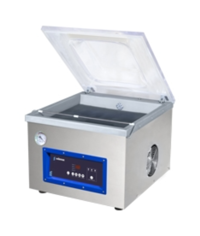 - Máquinas de embalagem a vácuo controladas por sensores, com barra de vedação dupla de 460 mm, 510 mm e 656 mm. Grande simplicidade de uso e componentes funcionais de alta qualidade. Todos os modelos incluem bomba Busch.