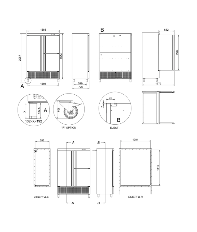 - Equipamento de prateleira: 3 grelhas por corpo.