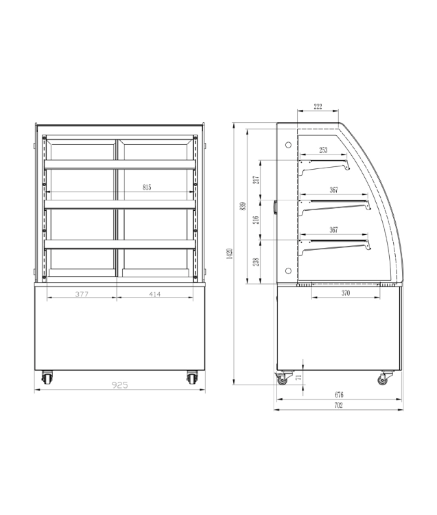 - O modelo VERM-1000-C é uma vitrine de parede, sem portas traseiras rebatíveis e aberta do lado do cliente.