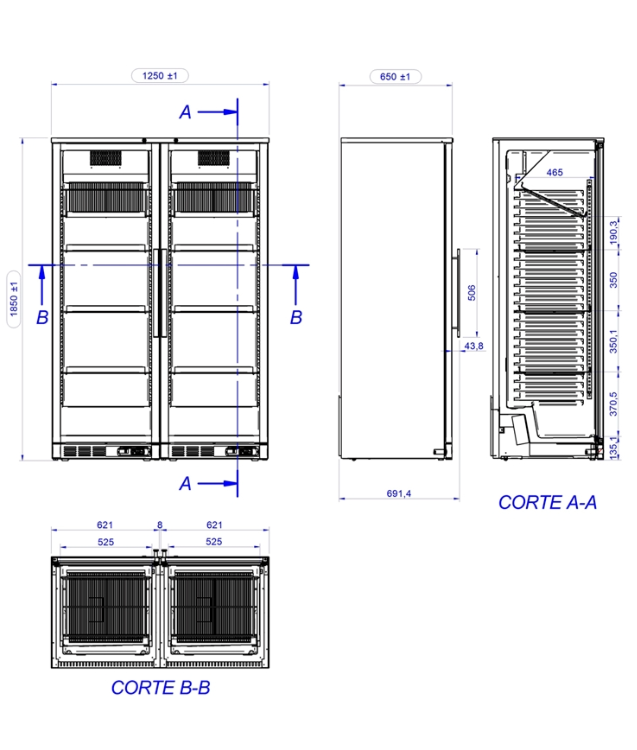 | Dimensões (mm) | 655x1240x1850 |