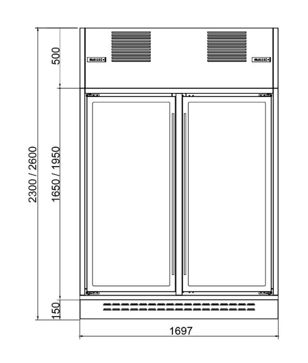 - – 2300 mm: Capacidade de 70 garrafas 1 porta, 140 garrafas 2 portas.